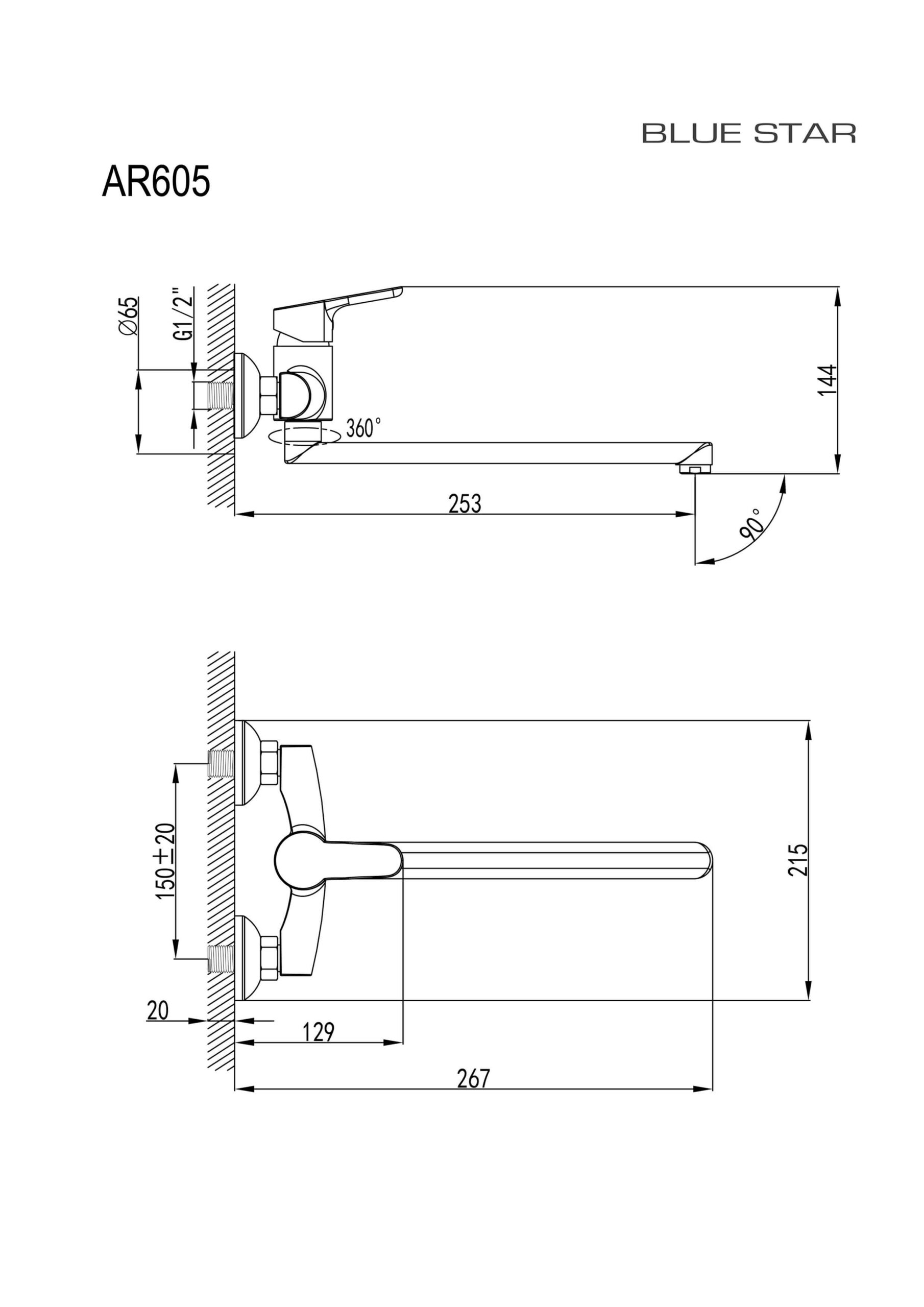 Toote mõõdud: Kõrgus = 144 mm | Laius = 215 mm | Kaugus tsentrist tilani = 253 mm