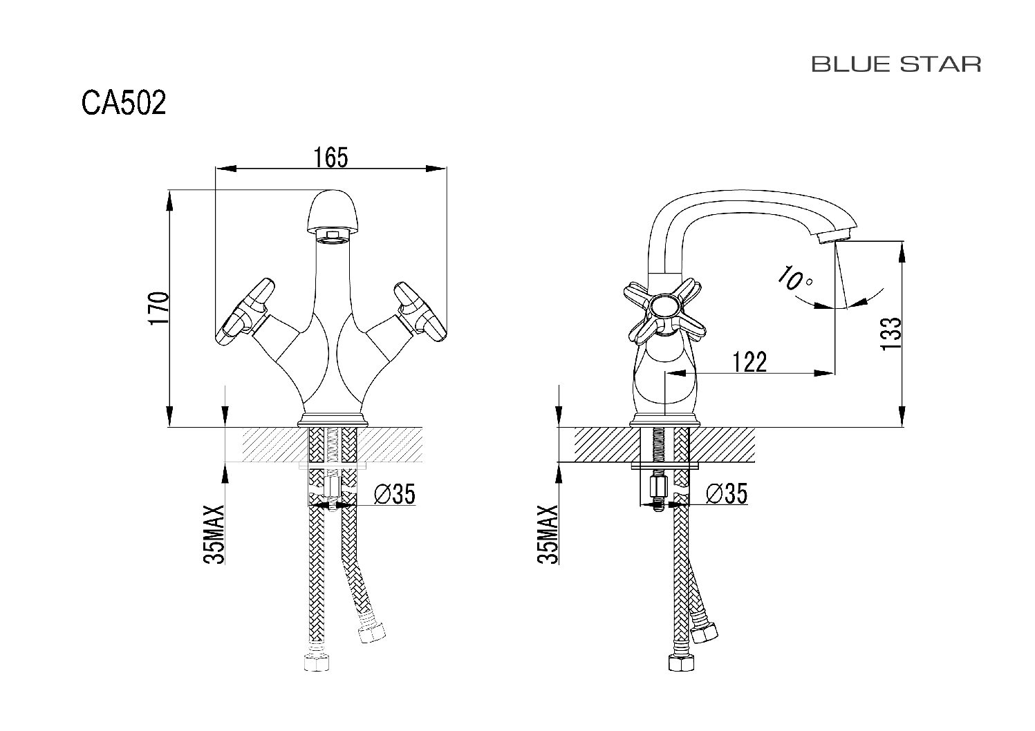• Segistil on Blue Star keraamiline tööelement nuppudega segistile.