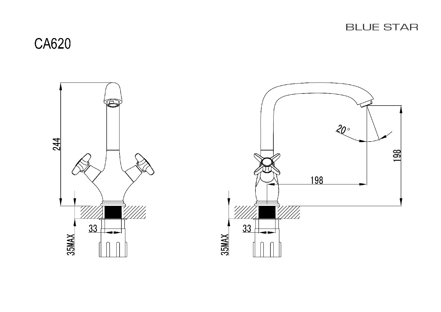• Blue Star XXL mugavustsoon köögisegistitel, tila kõrgus valamutasapinnast on 198 mm.