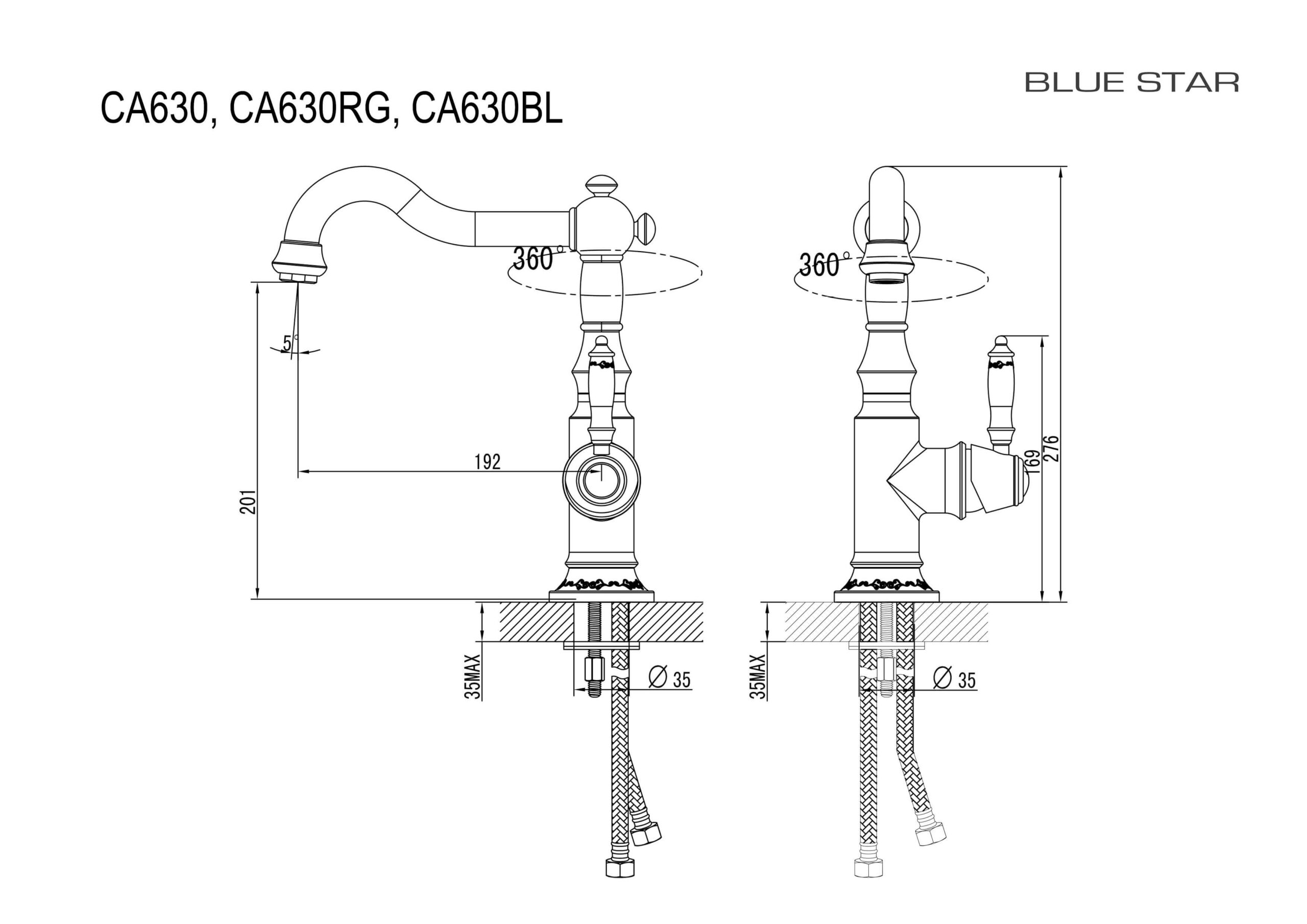 • Blue Star XXL mugavustsoon köögisegistitel, tila kõrgus valamutasapinnast on 201 mm.