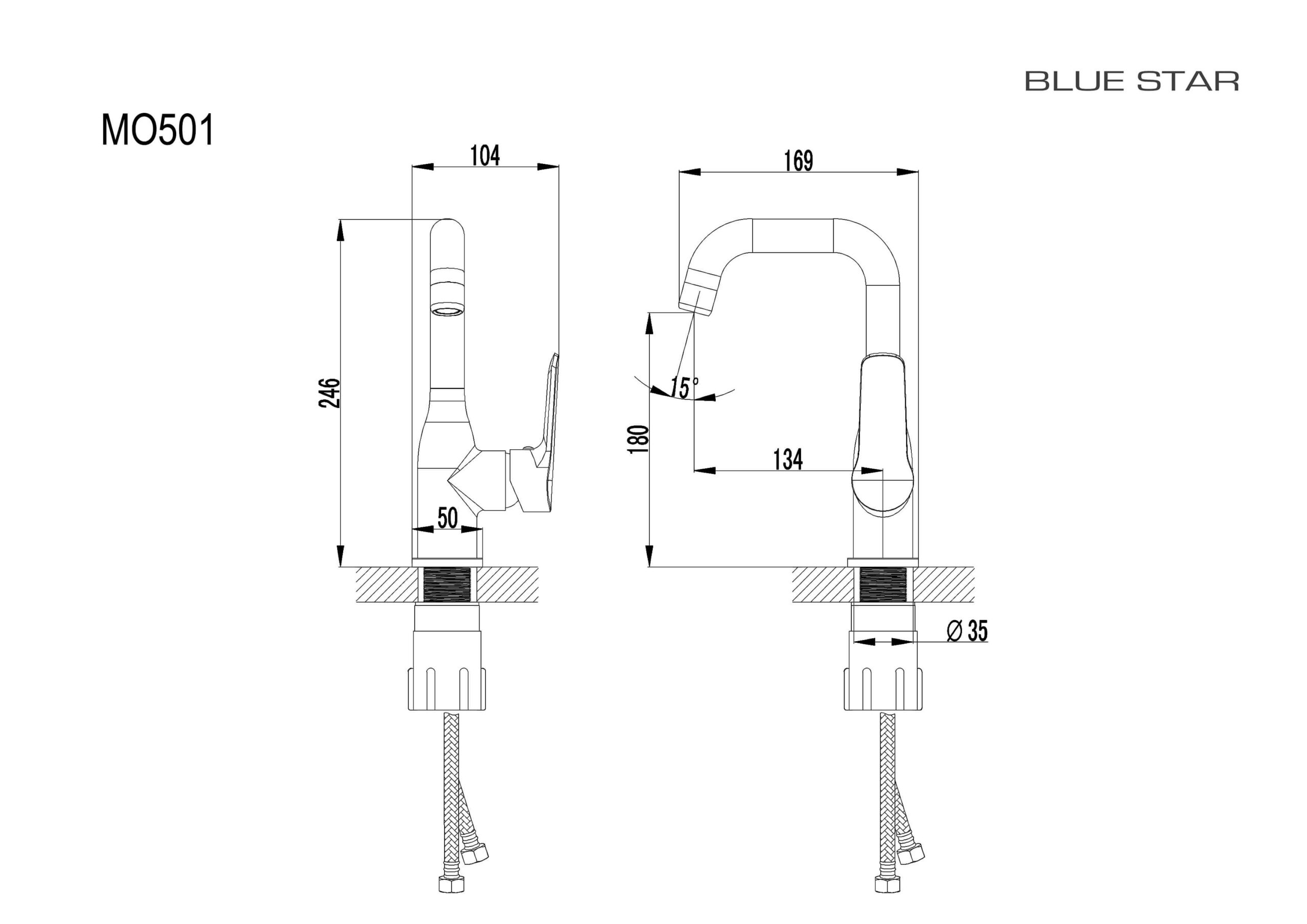 Toote mõõdud: Kõrgus = 246 mm | Kaugus tsentrist tilani = 134 mm | E = 180 mm