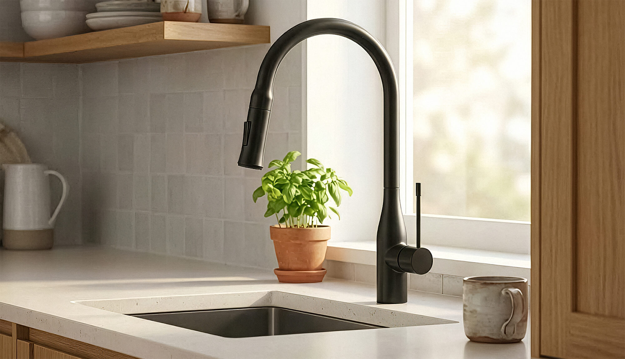 • Segisti on pöördtila ja väljatõmmatava otsikuga, mis teeb kasutamise eriti mugavaks. Lisaks tavafunktsioonile on segisti otsikul ka pehme dušifunktsioon, millega saab mugavalt marju ja puuvilju loputada